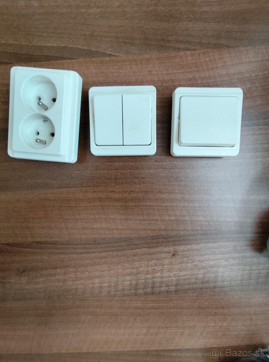 Predam použité plne funkčné zásuvky a vypínače bez poškodenia, niektoré sú trochu zožlnuté od slnka. Vypínač dvojpáčkový:6 ks.