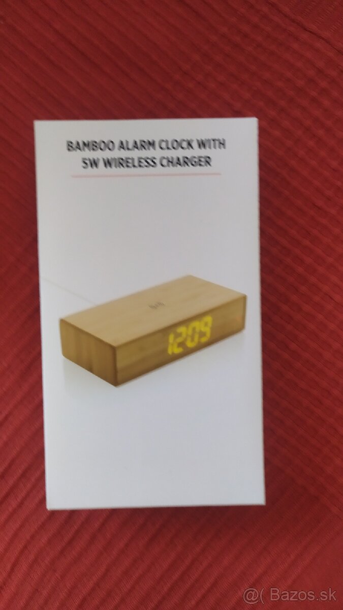 Nový nepoužívaný bambusový budík s kontaktným nabíjaním 5W. Bol to darček - reklamný predmet, u mňa bez využitia. Odpovedám ib ana mail.