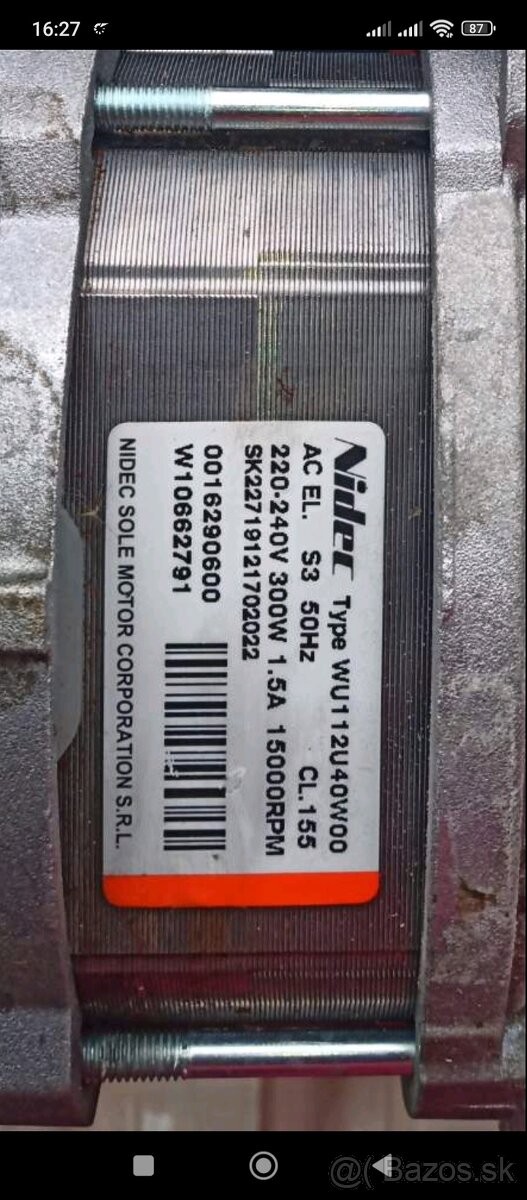 Predám funkčný motor z práčky - [8.12. 2025]Predám tento elektromotor z práčky. Parametre sú uvedené na štítkoch. Motor je odskúšaný a funkčný. Inzerujem viac elektromotorov z práčiek. Treba pozrieť.