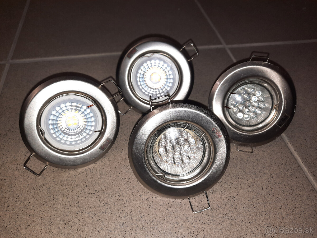 Predám 4 ks okrúhle kovové podhľadové (bodové) svietidlá. Cena spolu. Žiarovky grátis.