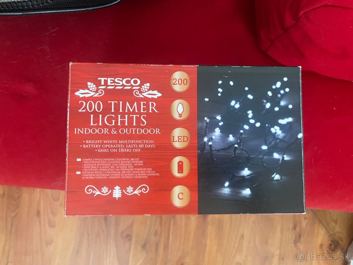 Led vianocne osvetlenie retaz 120 LED 9m tepla biela - [20.12. 2025]Svetelna retaz 120 LED, farba tepla biela. Uplne nova, nepouzita. Dlzka 18,9m, z toho 10m kabel a 8.9m biele LEDky. Vonkajsie a vnutorne pouzitie IP44, staticke svietenie. S funkciou casovaca – 6 hodin zapnute, 18 hodin vypnute. 220-240V.