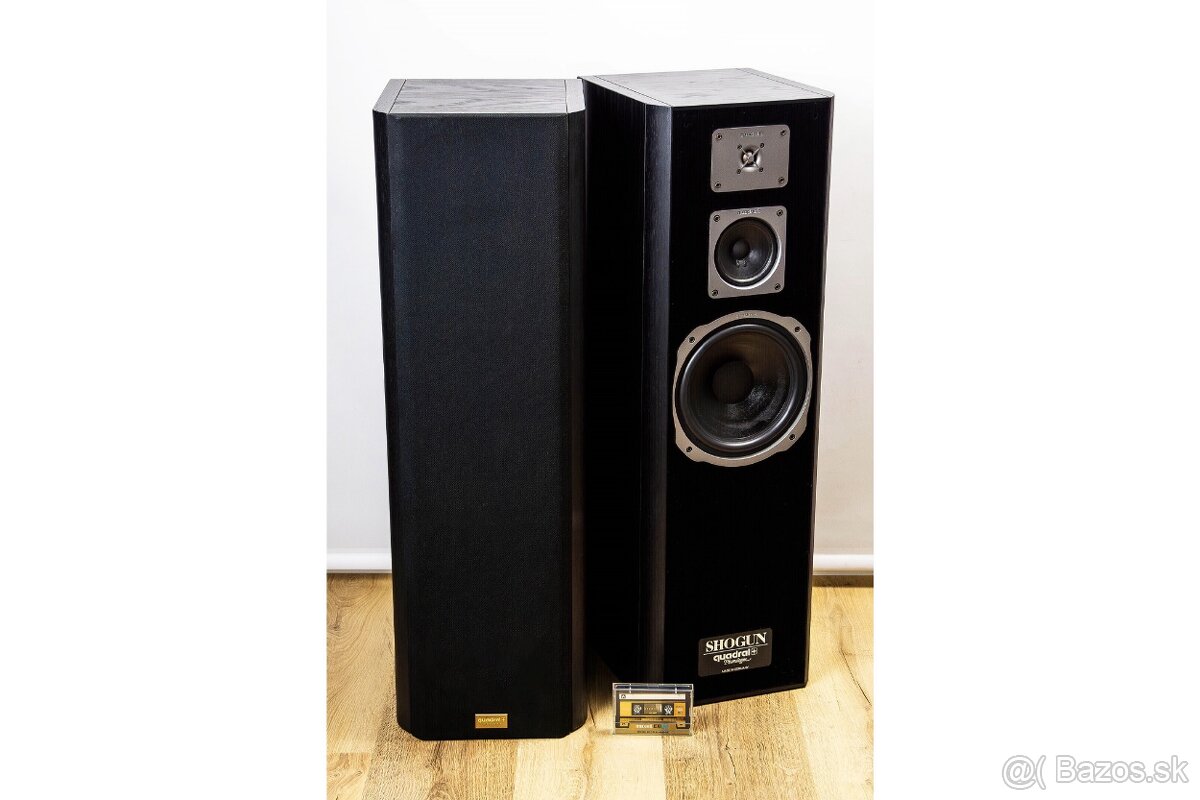 K dispozícií asi najpopulárnejší model stĺpovej a cenovo dostupnej reprosústavy zo série ,,Phonologue” nemeckej značky QUADRAL, konkrétne SHOGUN MKV v dokonalom technickom a vizuálnom stave nových / zozadu pád malých dier po skrutkách, reprosústava bola na konzolách, tieto sú vyplnené epoxydovým tmelom, viď autentická fotodokumentácia, ktorá zobrazuje predávaný pár/. Reprosústava prešla odbornou kontrolou, je plne funkčná a bez ďalších investícií do opráv a údržby na dlhú dobu. Na reprosústavu sa poskytuje 3-mesačná záruka.