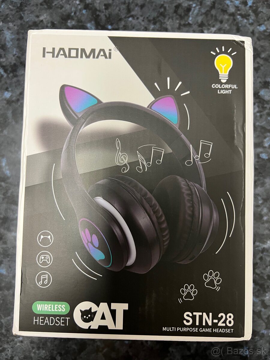 Predám úplne nové bezdrôtové slúchadlá HAOMAI STN-28 s mačacími uškami.