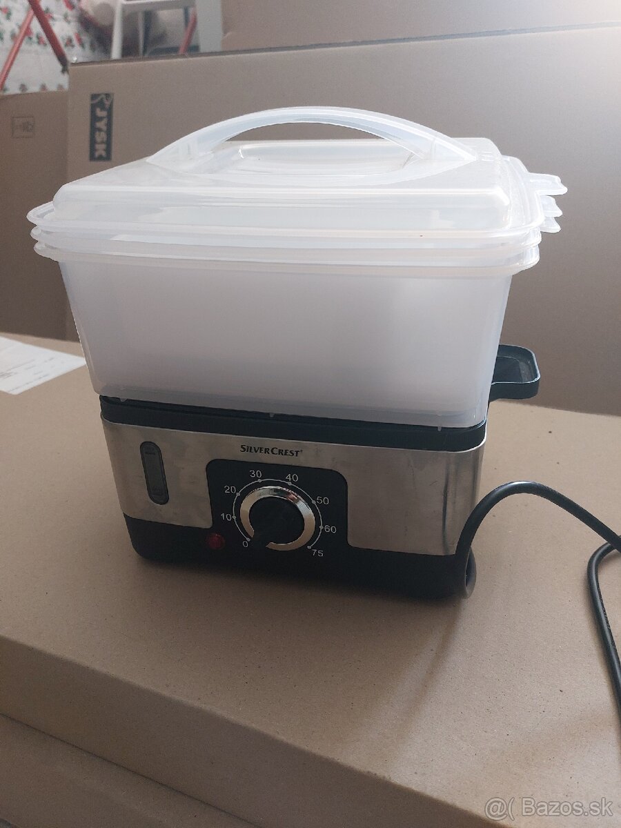 Dá sa variť súčasne až 3 druhy jedla v troch nádobách, návod na použitie + originál krabica,