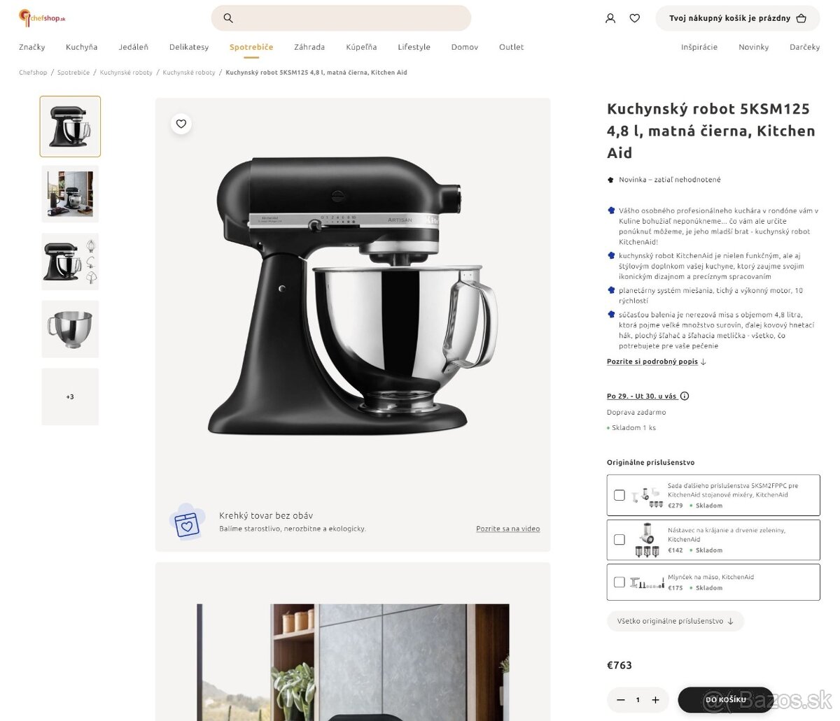 Predam nový nepouživaný kuchynský robot Kitchen Aid 5KSM125 cena v obchode 763€ teraz predam za 500€ dostal som ho nevhodný dar.