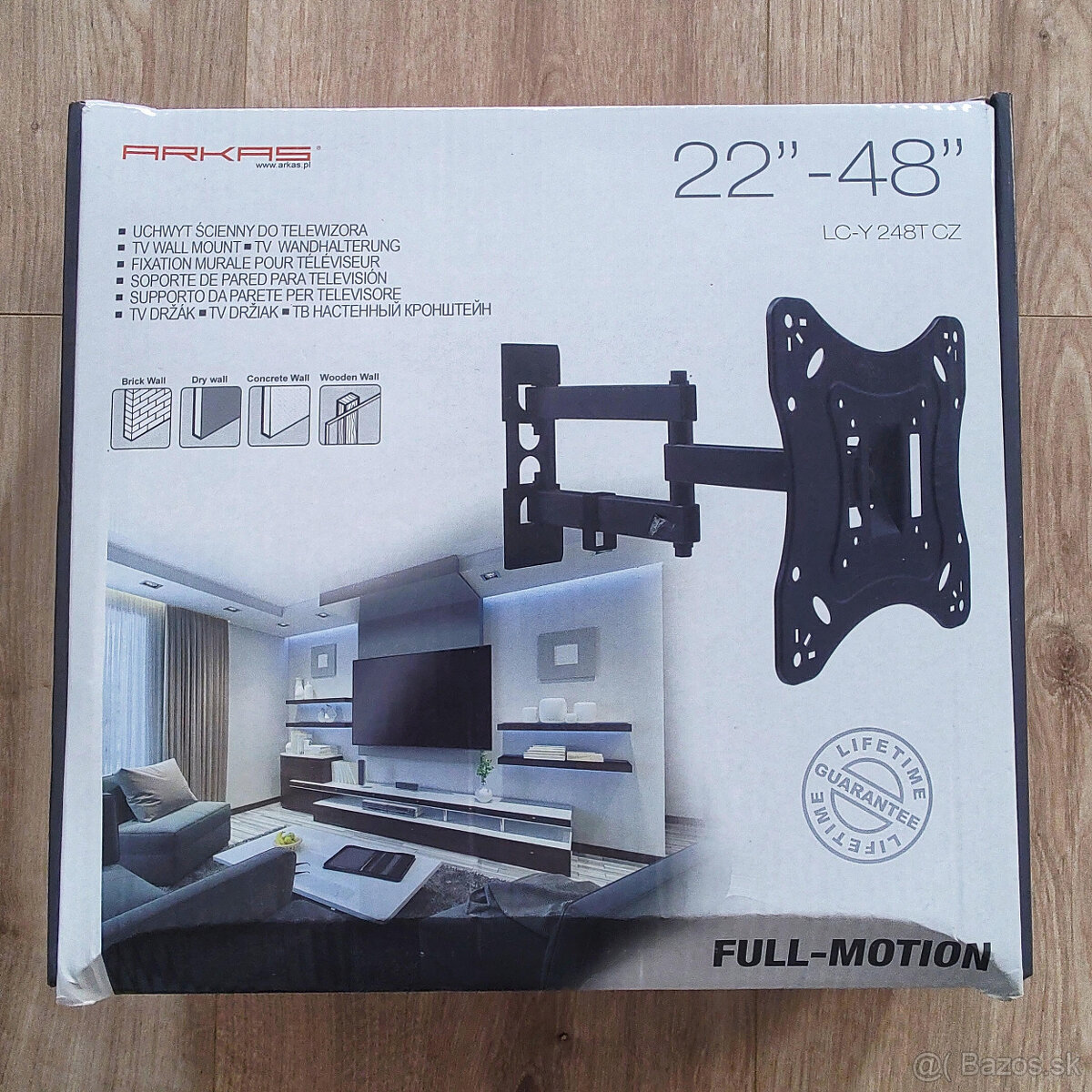 Predám nový (iba vyskúšaný) univerzálny držiak Arkas LCY 248 T CZ čiernej farby pre TV. Určený pre televízory s uhlopriečkou od 22" do 48", s nosnosťou do 25 kg. Držiak má štandard uchytenia VESA do 200x200 mm. Má otočné kĺby a umožňuje nastavenie záklonu (pomocou náradia) aj pootočenie do strany. Pôvodná cena 40€, moja cena 25€.