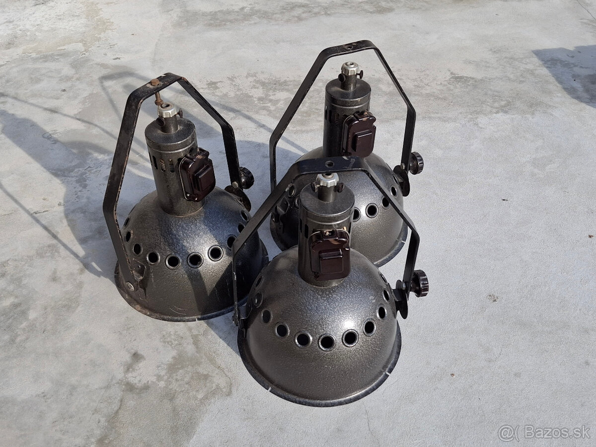 3 ks. industriálne závesné svietidlá - výška 45 cm priemer 31,5 + 3x keramická redukcia