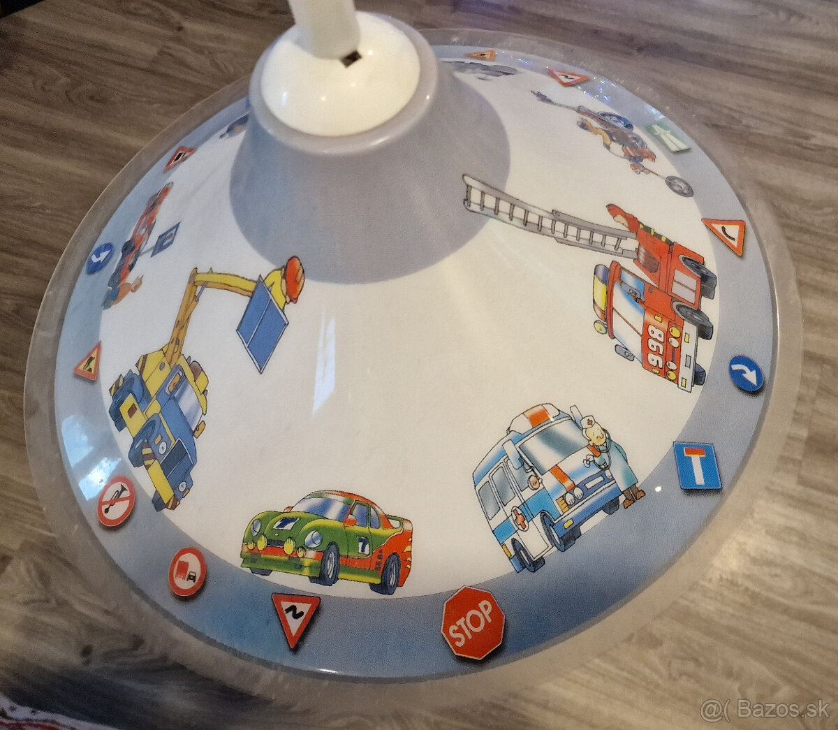 Ponúkam na predaj stropné svietidlo s detským motívom skôr do chlapčenskej izby – na svietidle požiarnické auto, policajt na motorke, traktor atď.