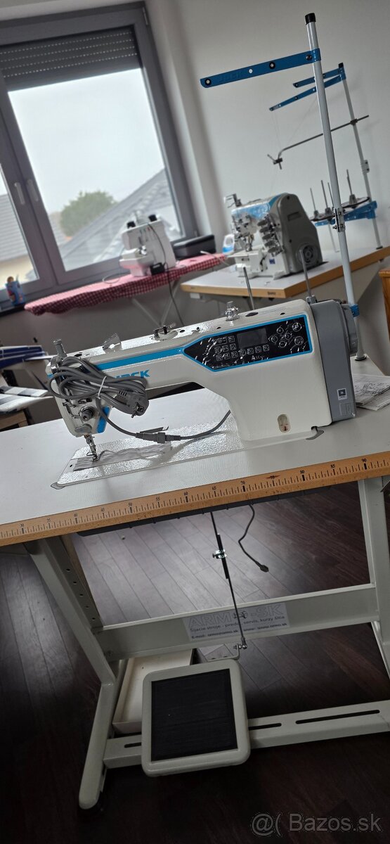 Predám nový poskladaný 1-ihlový šijací stroj so spodným (zúbkovým) podávaním a predĺženým ramenom - plocha 30cm typ JK-A5E-Q. Motor v hlave, LED osvetlenie, pozícia ihly, automatický odstrih, zapošitie, zdvih patky. Tri funkčné tlačidlá na hlave stroja pri ihlovej tyči, USB zásuvka.