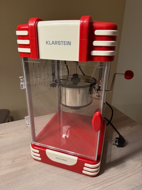 Predám 2x použitý popcornovač s výkonom 300 W na chrumkavý popcorn - sladký i slaný. Krátka doba ohrevu, veľké množstvo popcornu - asi 60 g za 4 minúty. Vzhľad kina v štýle 50. rokov so štýlovým lakovaním. Dôvod predaja - nevhodný darček, nakoľko popcornovač už máme - otestovaný počas oslavy - je super.