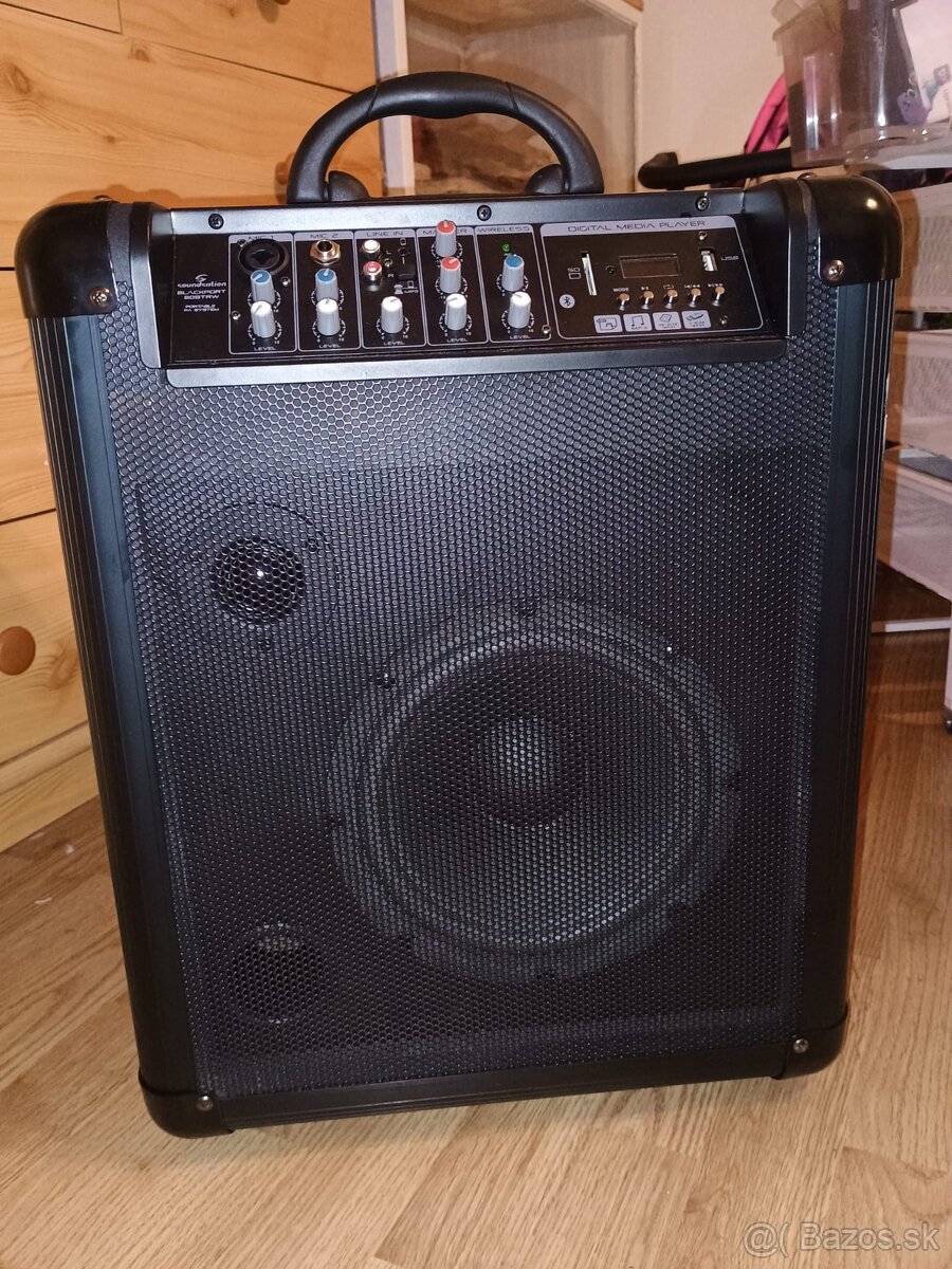 Pojazdný ozvučovací systém Blackport ponúka bohatú výbavu pre každého. Príjemný výkon 80 W dopĺňa štvor kanálový mixér so samostatnými ovládačmi hlasitosti, reverbom a dvojpásmovým ekvalizérom. Pripojiť môžete prakticky čokoľvek – nástroj, mikrofón či iný externý audio zdroj, a to aj prostredníctvom Bluetooth. Súčasťou výbavy je ďalej bezdrôtový mikrofón, integrovaný digitálny prehrávač s diaľkovým ovládačom a slotmi pre SD karty a USB. Dobíjacia batéria s indikáciou stavu vydrží v prevádzke až 6 hodín. Robustnú konštrukciu na kolieskach dopĺňa praktická teleskopická rukoväť.
