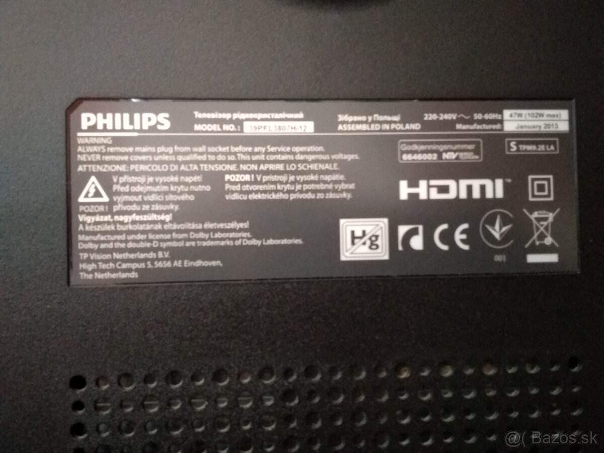 Predám Televízor Philips 39PFL3807 Full HD LED v bezchybnom stave,rok zakúpenia 2018,možná dohoda.