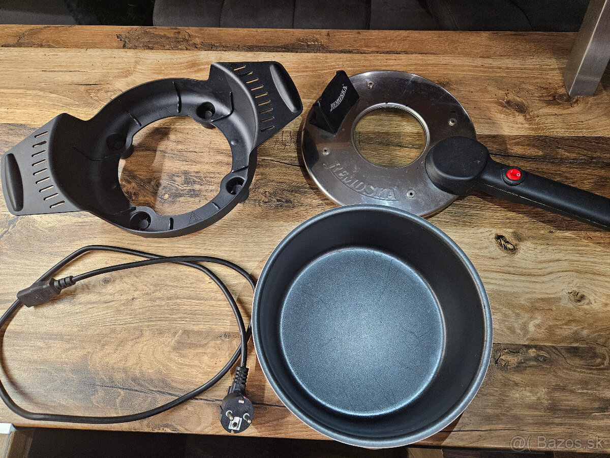 Predám málo používanú Remosku vo výbornom stave. Vnútorný aj teflónový povrch sú úplne bez škrabancov, plne funkčná a udržiavaná. Na vonkajšej strane sa nachádzajú len drobné kozmetické nedostatky, ktoré nemajú vplyv na používanie. Kompletné balenie vrátane podložky.