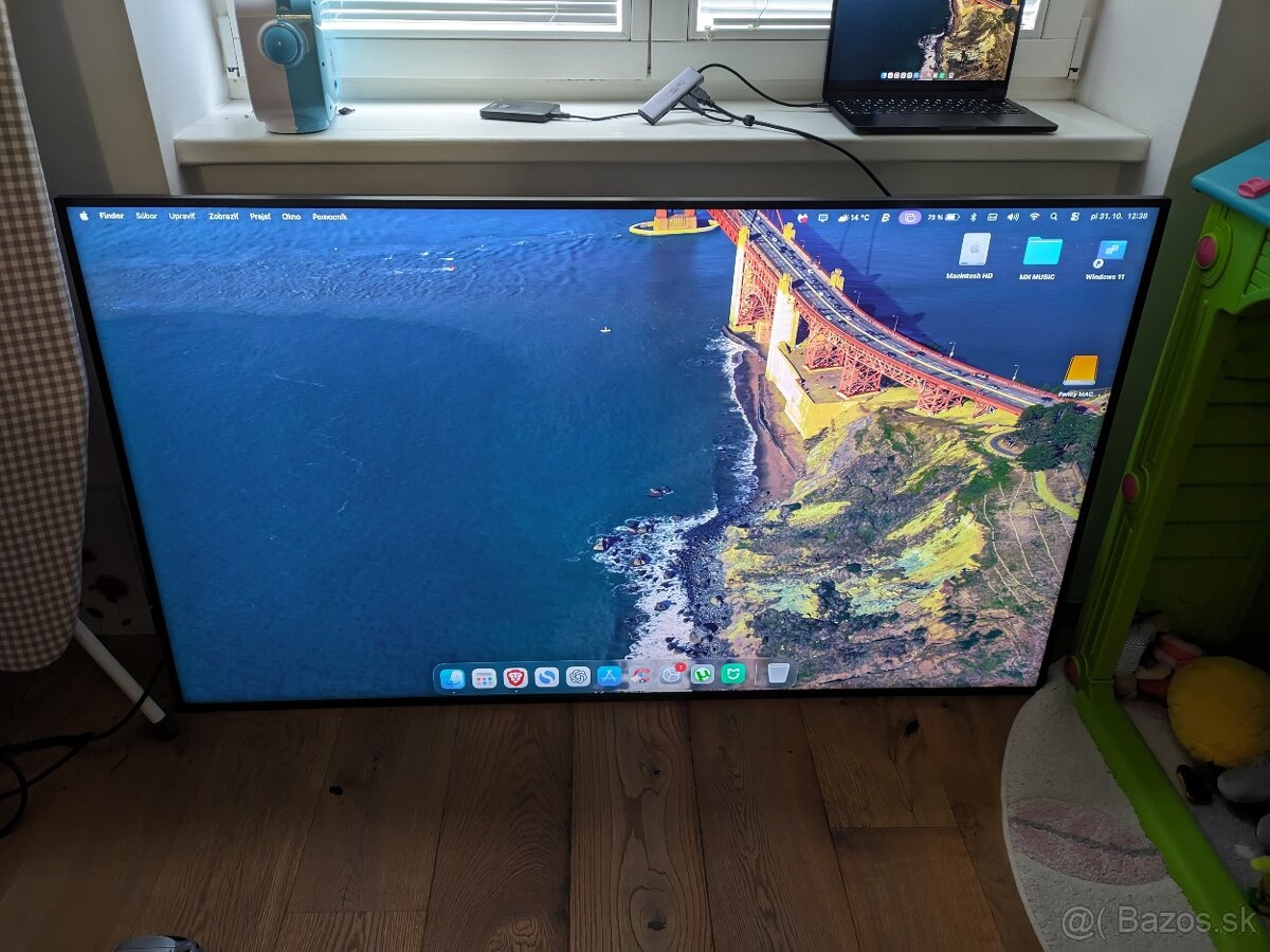 Predám 65" profesionálny displej Samsung QM65R s krásne ostrým a farebným obrazom, Non-glare efekt bez odleskov, rozlišenie 4k UHD 3840*2160, jas 500 nitov. Možnosť používať aj ako TV po zapojení set top boxu. jeden bok displeja je trochu zošuchaný z prenášania inak bez chybný stav. Len displej bez nožičiek alebo konštrukcie ba stenu, hmotnosť cca 25kg,