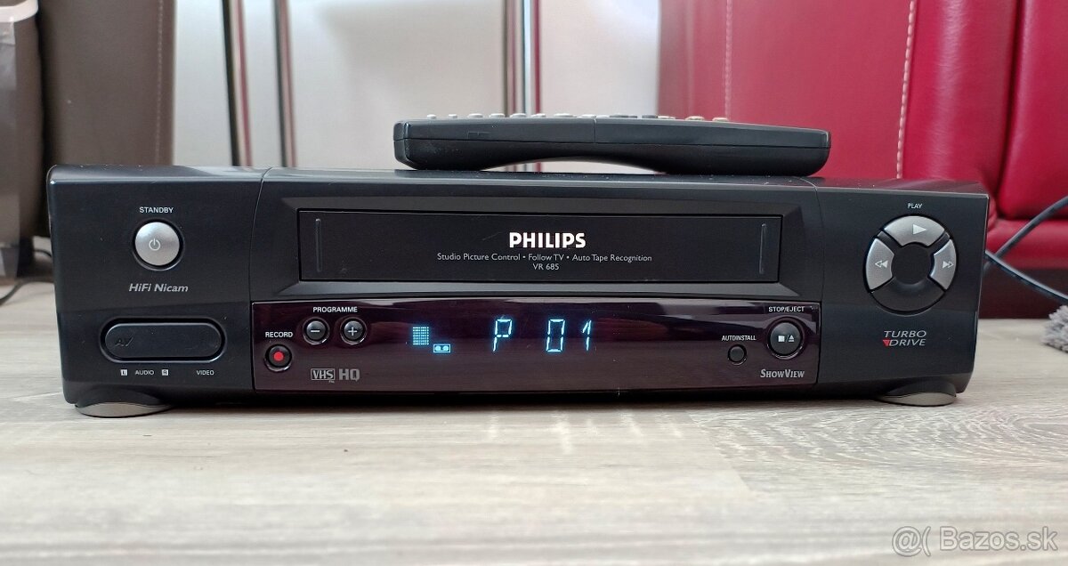 Predám zachovalý VHS videorekordér PHILIPS VR685/58, plus diaľkový ovládač.