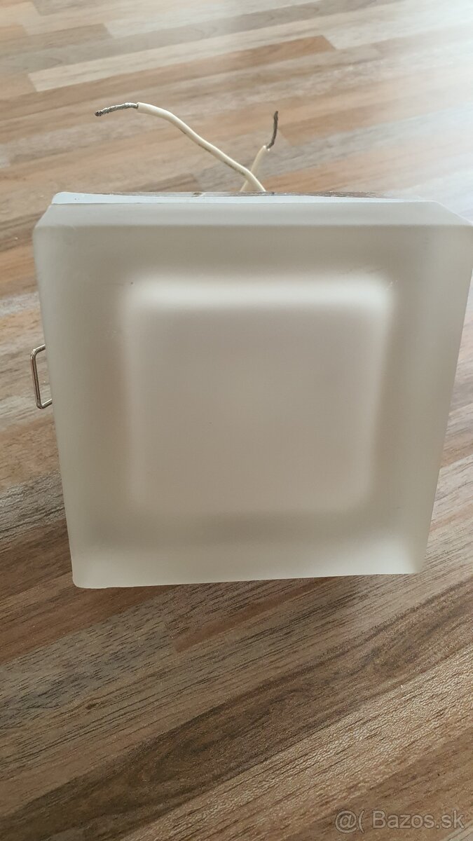 Predám 15 ks stropných podhľadových dizajnových svietidiel. Žiarovky (LED/Halogén) 12 V. Svietidlá používané, nepoškodené, funkčné, zachovalé, ako nové. Chrómové telo svietidla a masívne pieskované sklo. V každom svietidle už žiarovka a k tomu i 3 ks transformátor. Pätica svietidla GY6. Rozmer svietidla 80x80x40 mm (DxŠxV). Montážny otvor do sadrokartónu 60-70 mm.