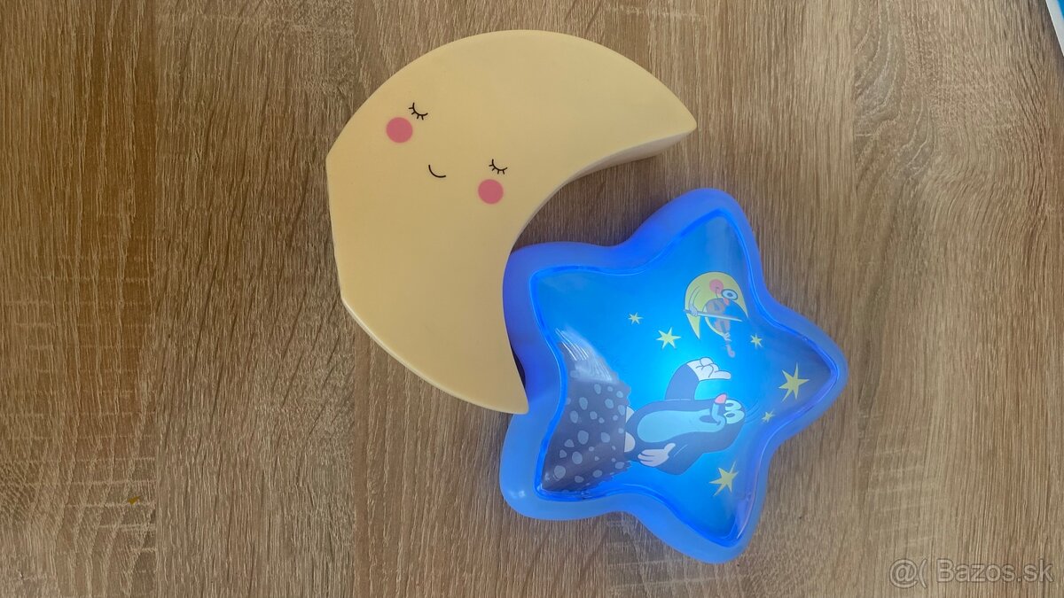 Mesiac, jemne zlte, ovlada sa na spodku gombikom, na 3x LR44 baterie