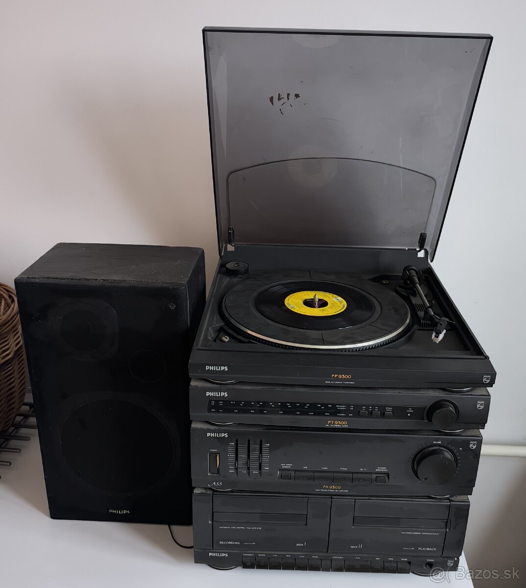 Hifi veza Philips s 2 reproduktormi - kazetak, gramofon, radio. Pouzivane, funkcne.