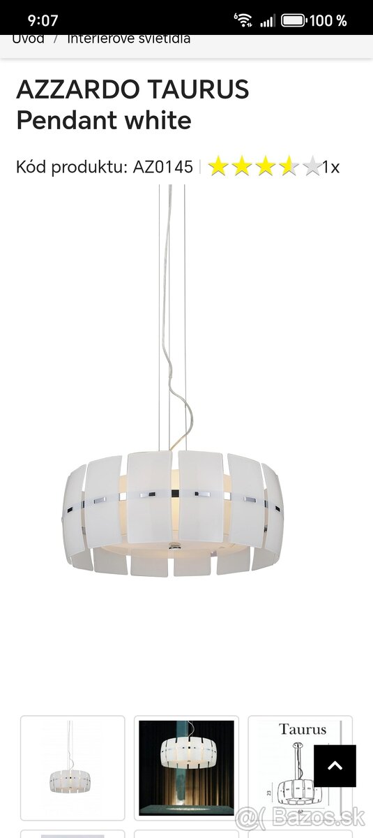 Predám závesné stropné svietidlo. Priemer 50 cm, výška tienidla 21cm. Materiál sklo, kov. Vrátane LED žiaroviek. Používané ako nové.