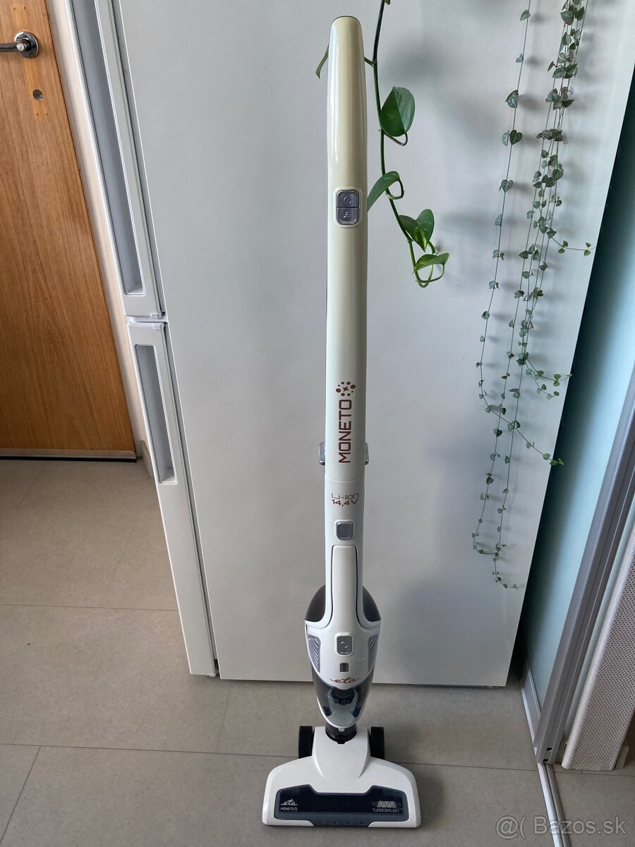 Tycovy vysavac zn. Eta, typ Moneto, biela farba, vo velmi dobrom stave, cisty a bez skrabancov, vratane nabijacej stanice