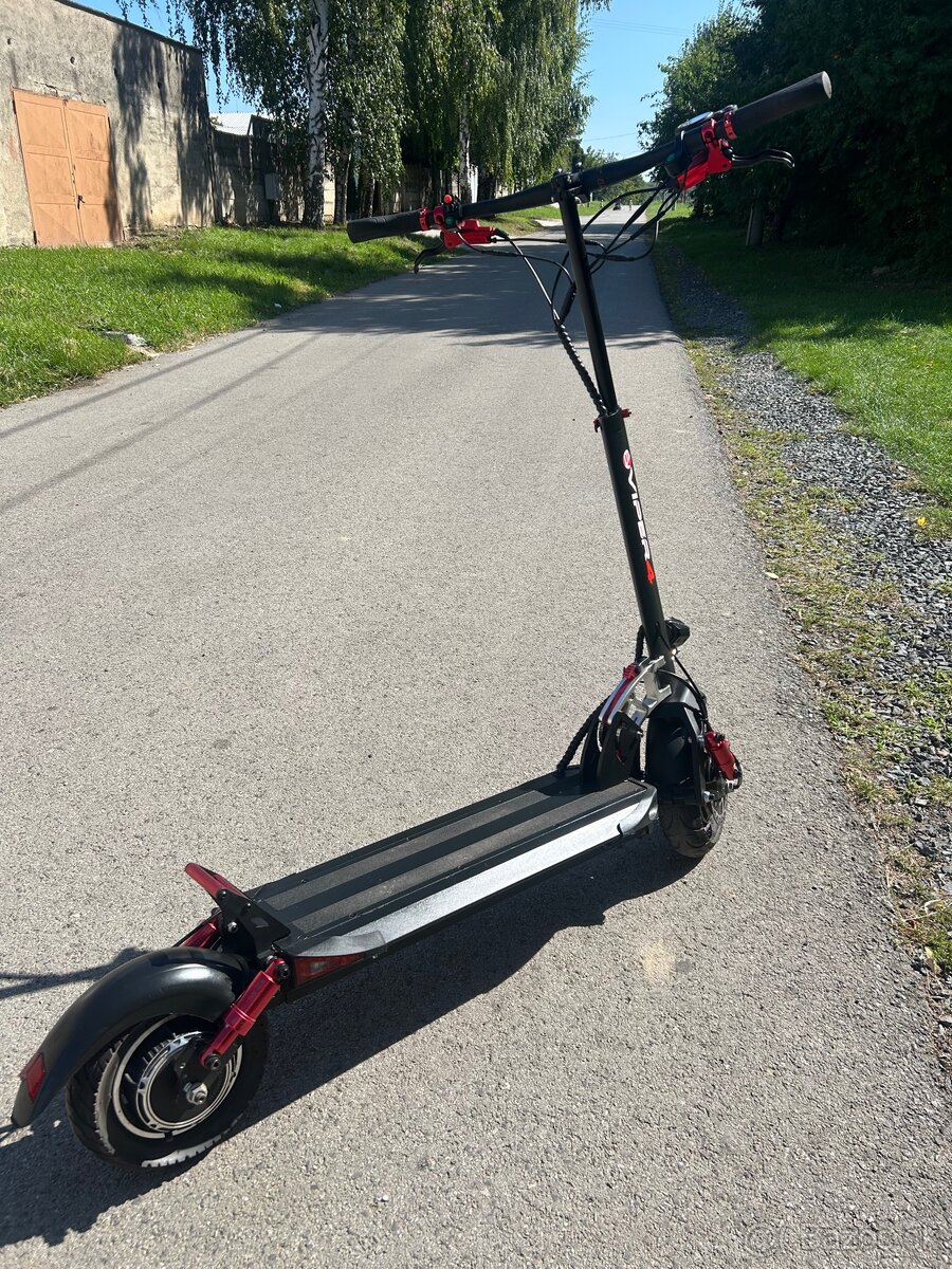 Predám elektrickú kolobežku Viper 4 Pro značky ecovehicle. Kolobežka má za sebou jeden pád a tak má zopár estetických nedokonalosti a to je pár škrabancov a predný rám, rám bol originál menení v predajni kde bola kupovaná kolobežka a bol nahradený rámom z verzie Viper 4 ,