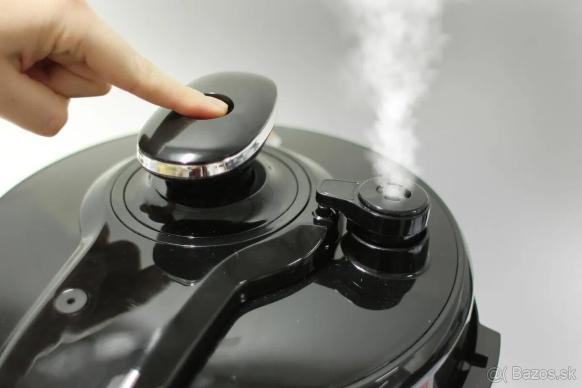 Predám Tefal CY505E30 All-In-One Pot. NOVÝ, iba rozbalený, Multifunkčný tlakový hrniec spolu s teplovzdušným grilom. Multifunkčný hrniec – s príkonom 1100 W, objem 6 l, počet programov: 25, tlakové varenie, varenie v pare, opekanie, dusenie a pečenie, vhodné do umývačky, časovač, udržanie teploty, termostat, displej, parný kôš, regulácia teploty, vyberateľná nádoba, odložený štart a automatické programy, 15-ročná záruka opraviteľnosti. ,, Len osobný odber ,,
