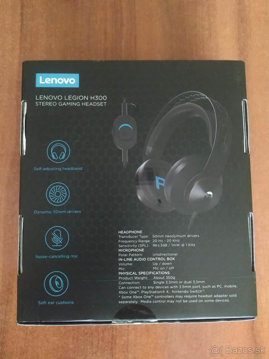 Predám úplné, nové, nepoužité Herné Slúchadlá Lenovo Legion H300 Gaming Headset. Na Xbox One, PlayStation 4 a Nintendo Switch. Pošlem poštou na dobierku. Herné slúchadlá • frekvencia 20 Hz-20 kHz • citlivosť 96 dB • impedancia 32 ohm • 3,5 mm jack • 1,85 m kábel • integrovaný zasúvateľný mikrofón • náušníky z pamäťovej peny • 50 mm meniče