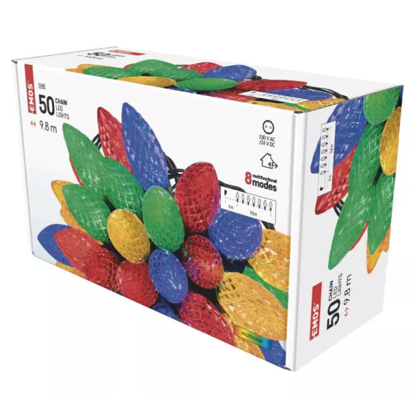 Predám novú LED Vianočnú reťaz na stromček. Dĺžka je 9,8 m. Farebné diódy sú v tvare šišiek. Reťaz je nová, v 100% stave.