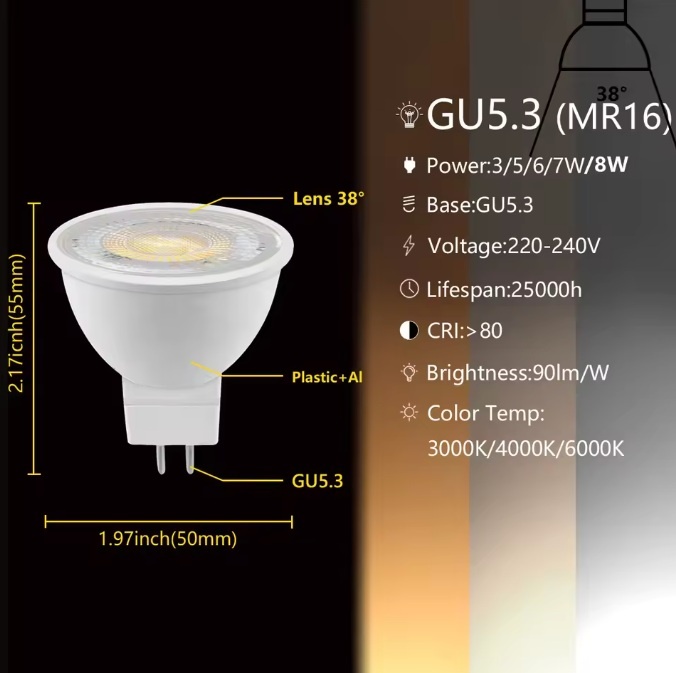 Predám bodové svetlá GU5.3 5W LED AC220V 4000K- denné svetlo, 10ks za 10 EUR spolu