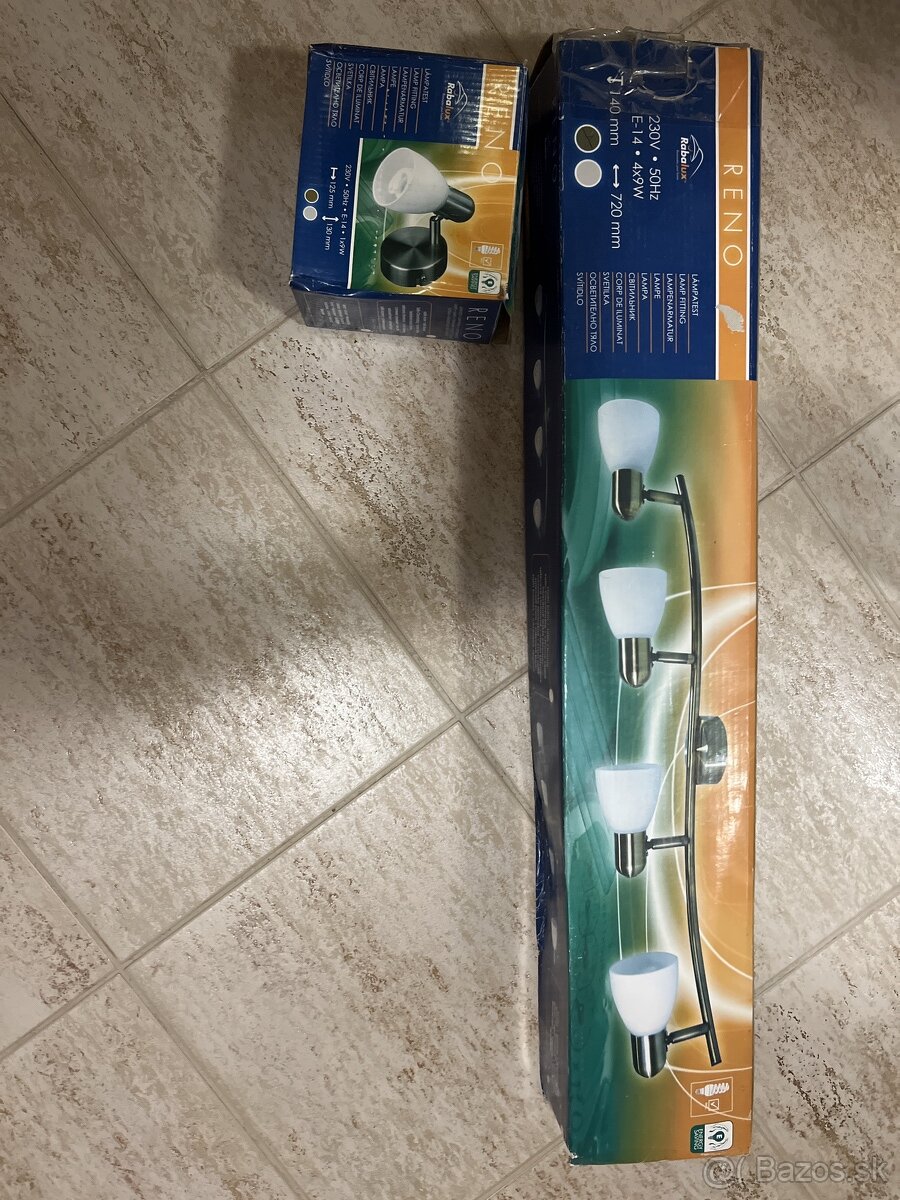 Nový lúster bronzová farba. Mám k dispozícii 1ks. Je možné dokúpiť malé nástenné svietidla za 5€ks (viď na foto) tiež mám 1ks k dispozícii.