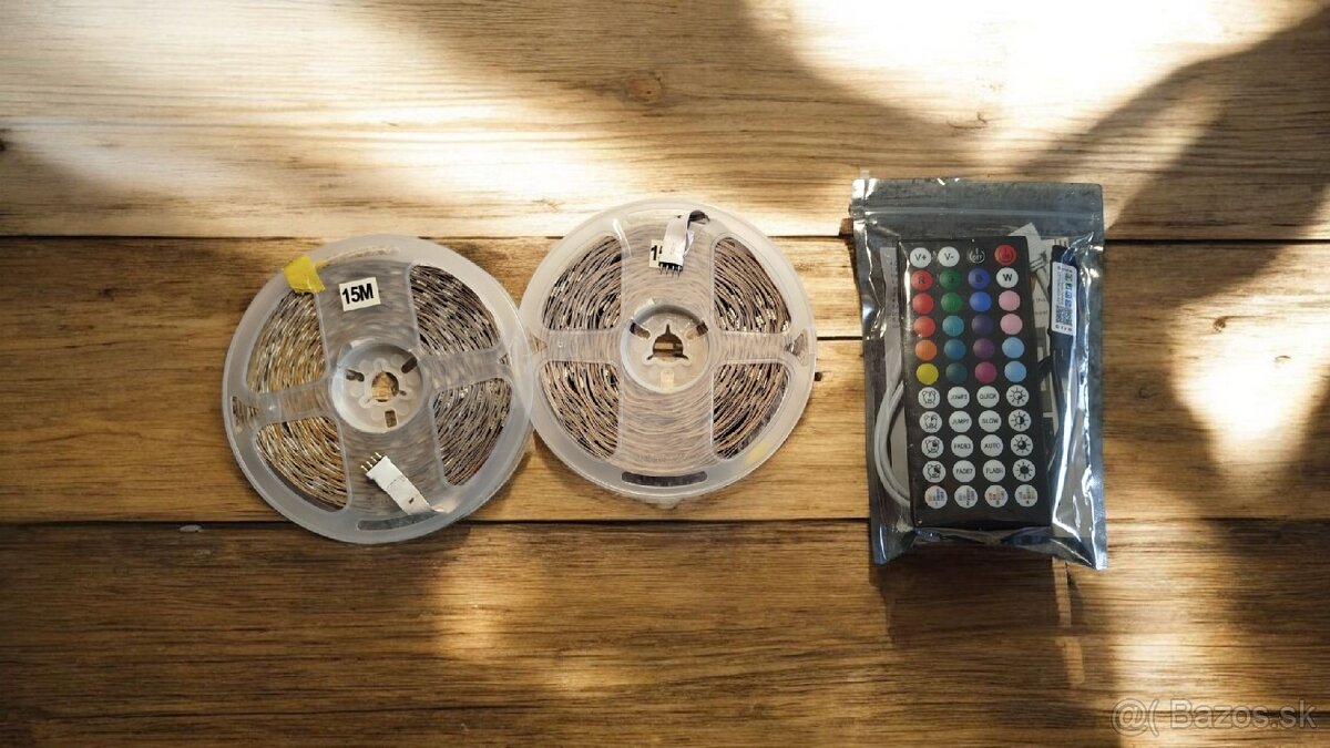 Predám tieto LED svetlá 2x 15 metrov. Nalepovací pásik z nich ešte nebol odstránený. Približne 15 led diód nefunguje , avšak pri takom veľkom množstve LED diód to ani nevidno. Samozrejmosťou je kompletná sada a taktiež ovládanie cez aplikáciu .