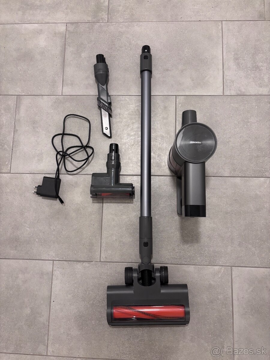 skvely stav, kupovany marec 2025 v mi store, stale v zaruke vyse roka. pri vysavani svieti. na strednom rezime vydrzi povysavat cca 120m2. bateria 100% stav
