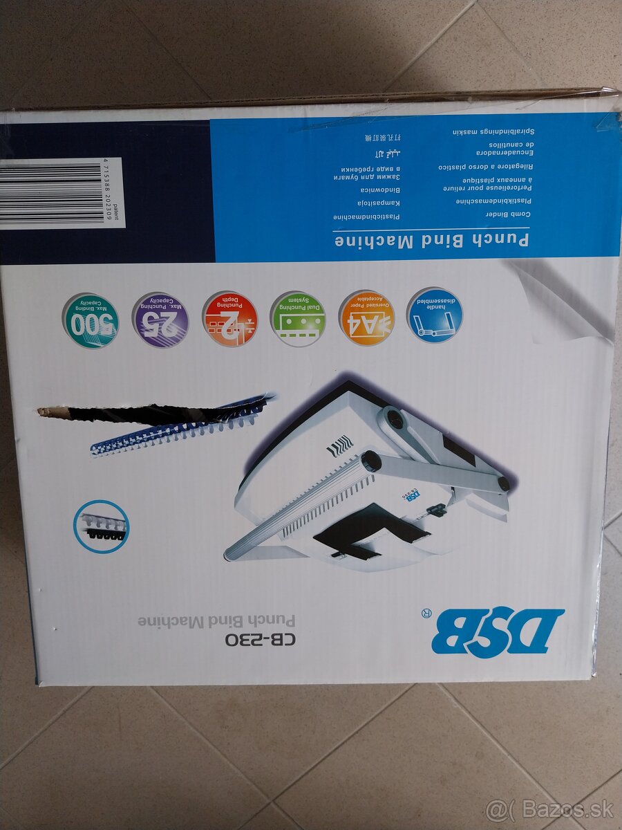 Predám zánovný, plne funkčný kancelársky viazací stroj na dokumenty DSB CB-230.