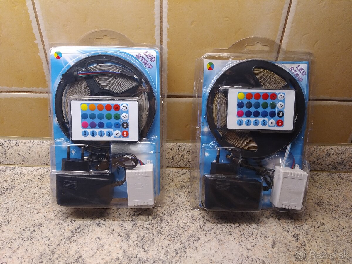 predám rgb led pásik(led svetielka),dľžka 5m,so všetkým príslušenstvom,nové,otvorené kvôli preskúšaniu,vhodný aj do vlhkého prostredia,pásik zaliaty v silikóne,zo zadnej strany samolepiaca páska,cena za 1/ks-20eur(2ks-35eur),obidve sú rovnaké-farby sa dajú prepínať