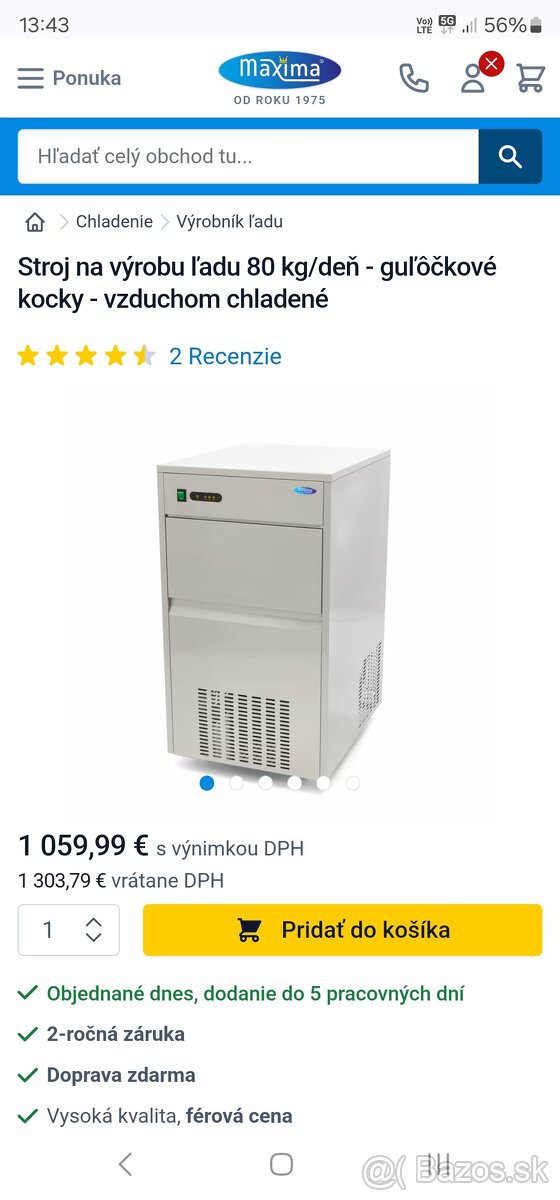 Predám tento stroj na výrobu ľadu od značky Maxima. Dôvodom predaja a nízkej ceny je, že prevádzka v ktorej sa používal bola zrušená a doma zbytočne zaberá miesto.