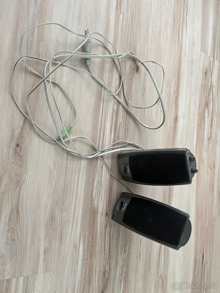 Stereo reproduktorová sústava, ideálna pre domáce alebo kancelárske použitie k PC, netbooku alebo k notebooku. Na svoje rozmery ma dobry zvuk.
