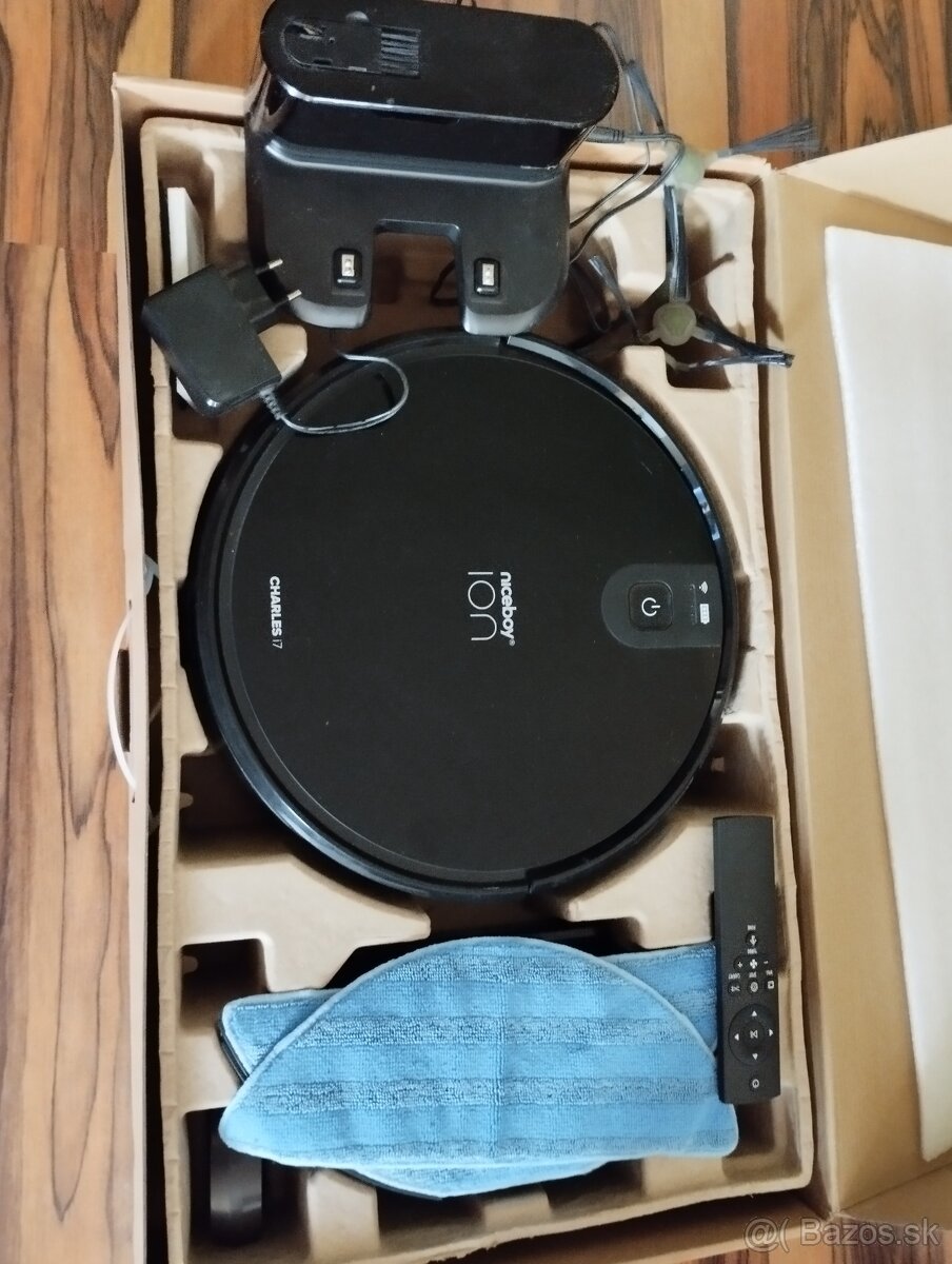 Úplne ako nový...použil som ho tak 4x..všetko vybavenie k tomu aj s krabicou...Robotický vysávač Niceboy ION Charles i7 v sebe kombinuje nielen účinný vysávač, ale hlavne aj mop s inteligentným dávkovaním vody AQUA Direct. S mobilnou aplikáciou Niceboy ION vybavíte upratovanie v priebehu sekundy zo svojho mobilného telefónu. Vysávač využíva navigačný systém NaviGATE pre stopercentné pokrytie upratovanej plochy a s technológiou Red SENSE sa vyhne kolíziám s vašim nábytkom alebo pádu zo schodov. Kapacita batérie vydrží na 120 minút upratovania, pred vybitím batérie sa robot sám príde dobiť do nabíjacej stanice.