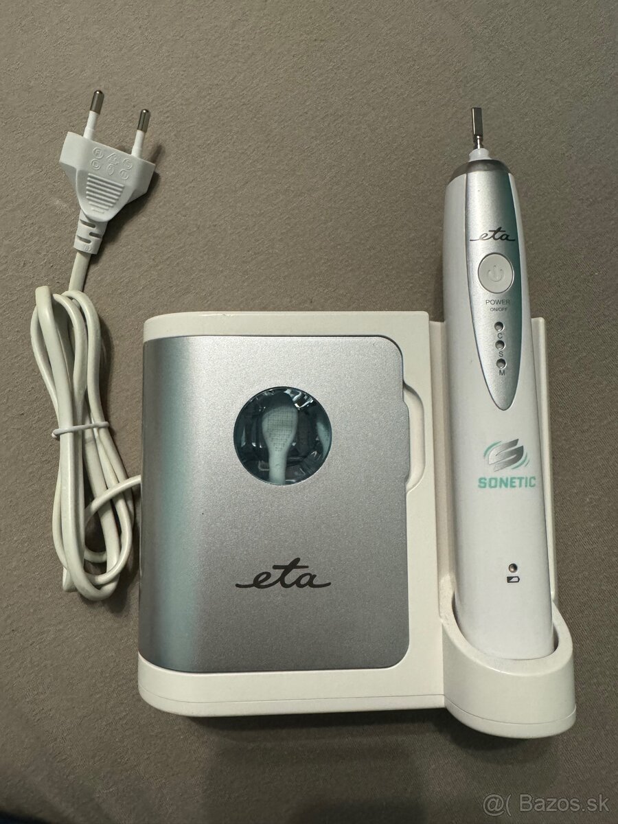 Sónická zubná kefka Eta 170790000 Sonetic, určená pre dokonalú ústnu hygienu. Kefka je dodávaná s UV sanitizérom, ktorý ju dokonale dezinfikuje po každom použití. Medzi jej vlastnosti patria 3 režimy čistenia, 2-minútový časovač, extrémne dlhá výdrž a počet pohybov za minútu a ž 31.000. Sonetický pohyb zaistí šetrnejšie čistenie bez podráždenia ďasien a narušenia zubnej skloviny. Obsahuje 3 ks náhradných hlavíc, telo zubnej kefky a základňu s UV saniitizérom. Farba: biela.