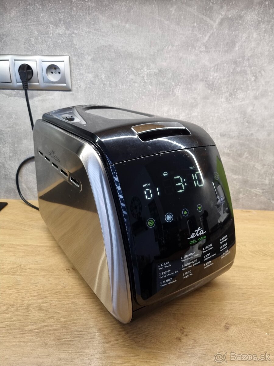 Predám pekáreň chleba ETA Delicca – plne funkčná, vo veľmi dobrom stave. Jednoduché ovládanie, viac programov na pečenie chleba, cesto aj džem. Vhodná aj na bezlepkové pečenie. Súčasťou je forma a hnetacie háky.