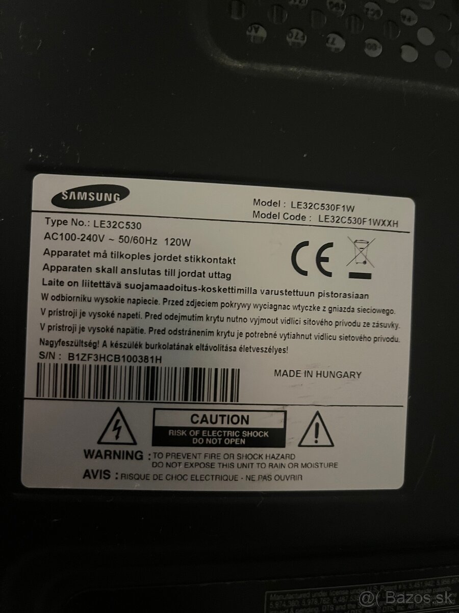 Samsung full hd 1920 x 1080 94 cm 37" LCD - [10.2. 2026]Ponukam na predaj pouzivany televizor LCD Samsung, velkost uhlopriecky 94cm - 37", podpora DVB-T tuner, DVB-S/S2, DVB-C, rozlisenie full hd 1.920 x 1.080, vsetky vstupy zobrazene na fotkach.