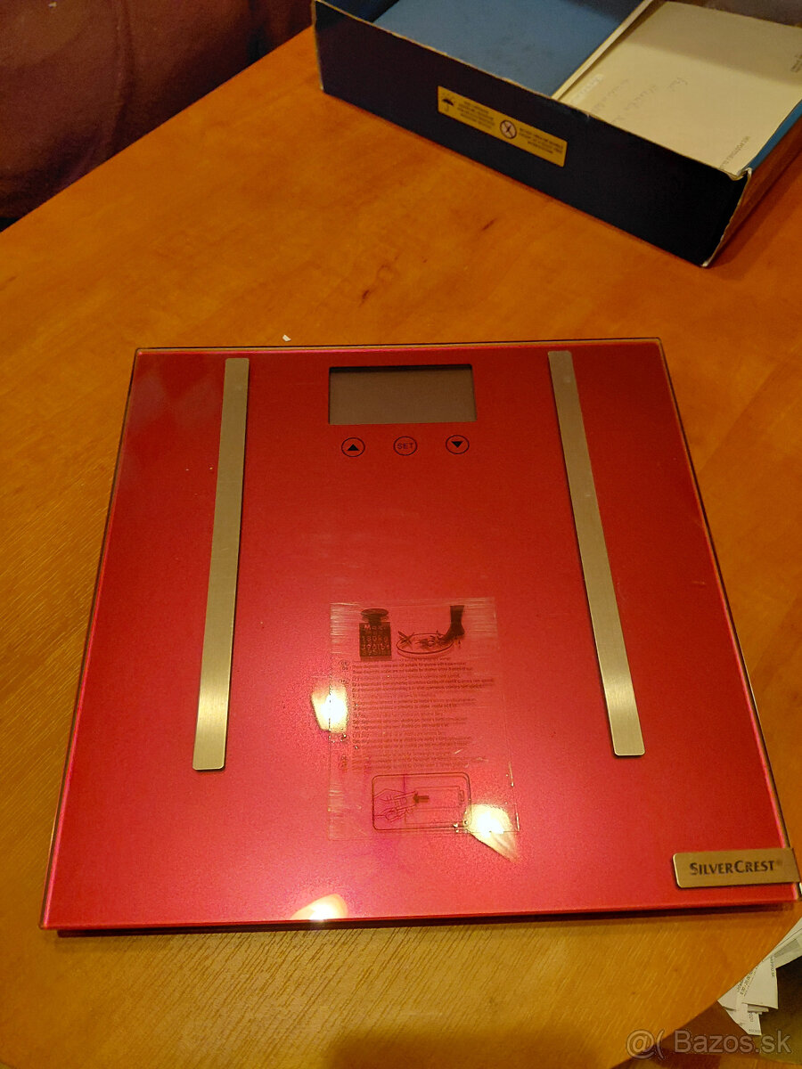 Diagnostická digitálna váha Silvercrest meria pomer vody,svalov, kostí, kalórie. Má 6mm bezpečnostné sklo, zapína sa stúpením na váhu. V originálnom obale, málo používaná. Bez bateriek.