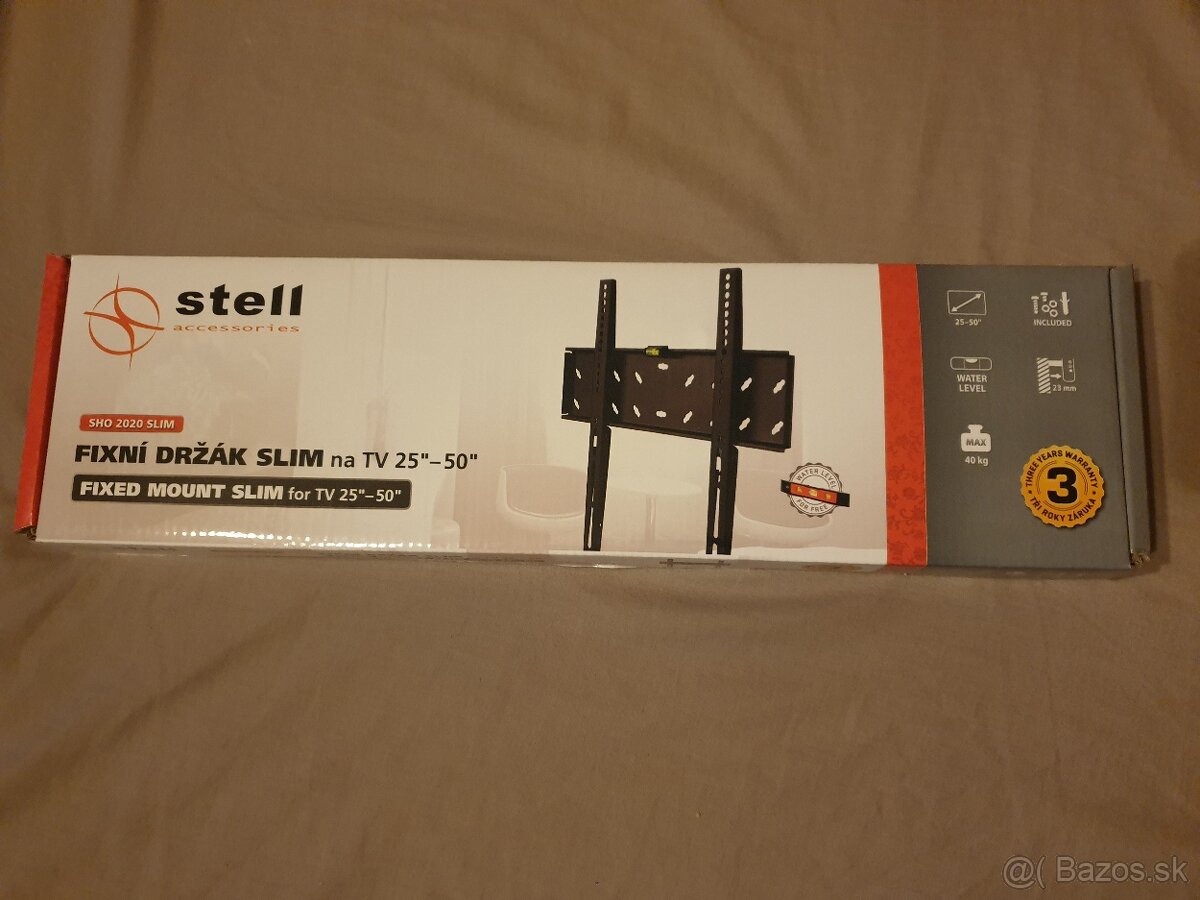 Predam uplne nove, kompletné, zabalene drziaky na tv vratane vodovahy. Mam 2ks (1 kus otvoreny kvoli foto-nepouzite). Vsetky info na foto.