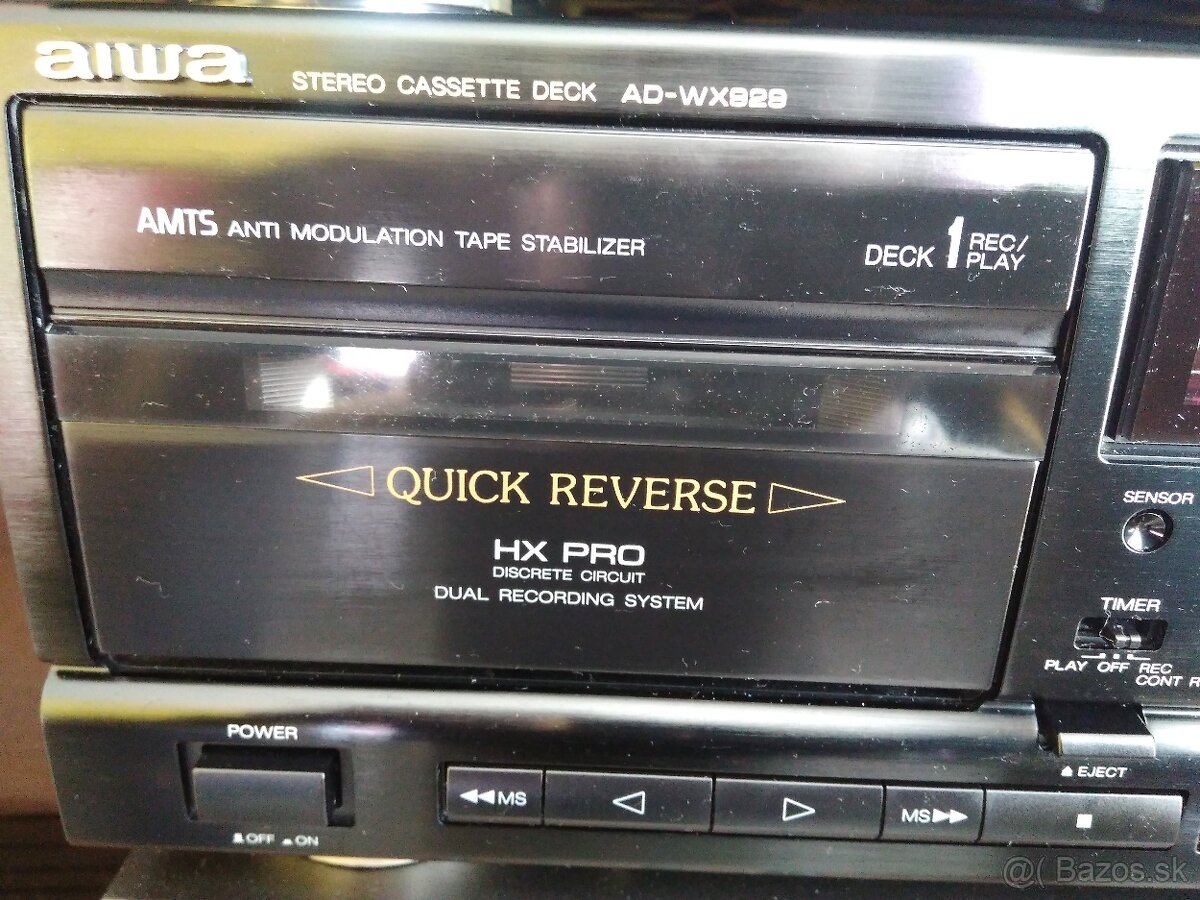 Na predaj legenda a TOP rada aiwa AD-WX929 hifi stereo v skvelom stave...43cm šírka... dolby B,C,Nr,HxPro..data system,quick reverse...autokalibrácia ...dual recording systém...Play TRIM zvýraznenie výšok...odmagnetizované hlavy,prístroj čistené z vonku aj z vnútra...všetko funguje,zberateľský kúsok...možnosť odskúšania...UPOZORNENIE!!! Vzhľadom na nové právne predpisy je pri predaji vylúčená akákoľvek záruka, ručenie, zodpovednosť za vady materiálu a vrátenie tovaru...