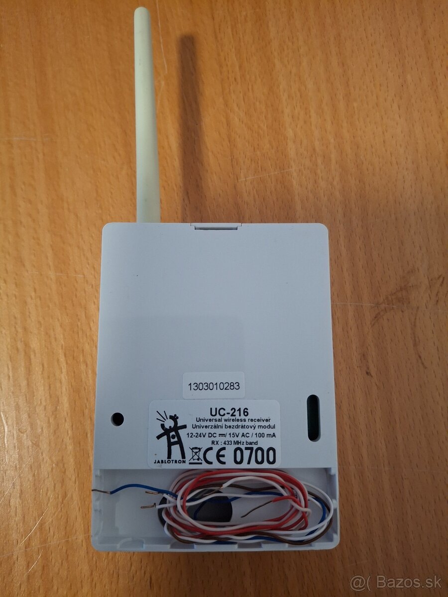 Predám bezdrôtový prenos Jablotron UC-216. Jeho dvomi výstupmi je možné ovládať dve rôzne zariadenia. Ovládať ho je možné diaľkovým ovládaním RC-22, alebo RC-44. Inštalačný a užívateľský manuál priložím.
