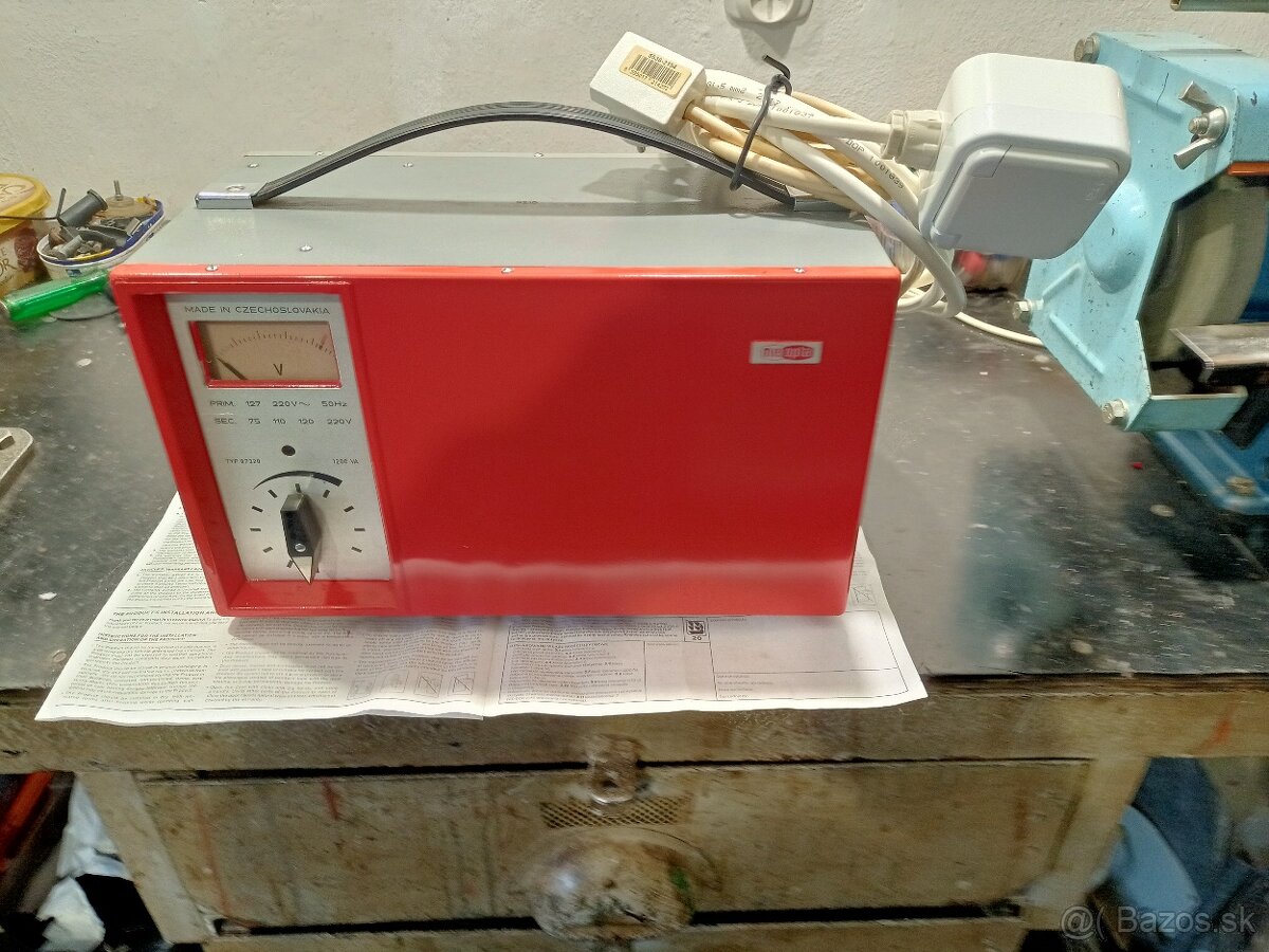 Predám zánovný oddeľovací 230V stabilizovaný zdroj napätia. Vstupné napätie - 180V - 240V. Výstupné napätie - 220V - 280V s možnosťou regulácie napätia, pre prípad poklesu napätia v sieti, alebo za elektrickou centrálou pre ochranu spotrebičov. Výkon zdroja je 1200W.