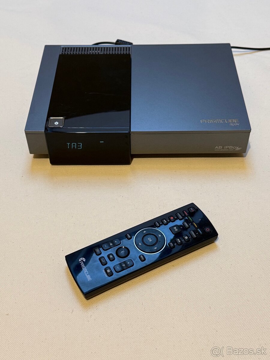 AB IPBOX Prismcube Ruby. Jedná sa o DVB S2 dvojtunerový HD satelitný prijímač + multimediálne centrum v jednom.Linux