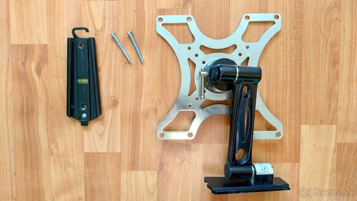 Ponukam na predaj drziak TV na stenu. Je to jednoduchy model co ma len dva klby pre otacanie TV doprava/dolava a nastavitelny je aj naklon TV - dole/hore. Ked je rameno vystrete, vdzialenost montaznej platne od steny je 23cm.