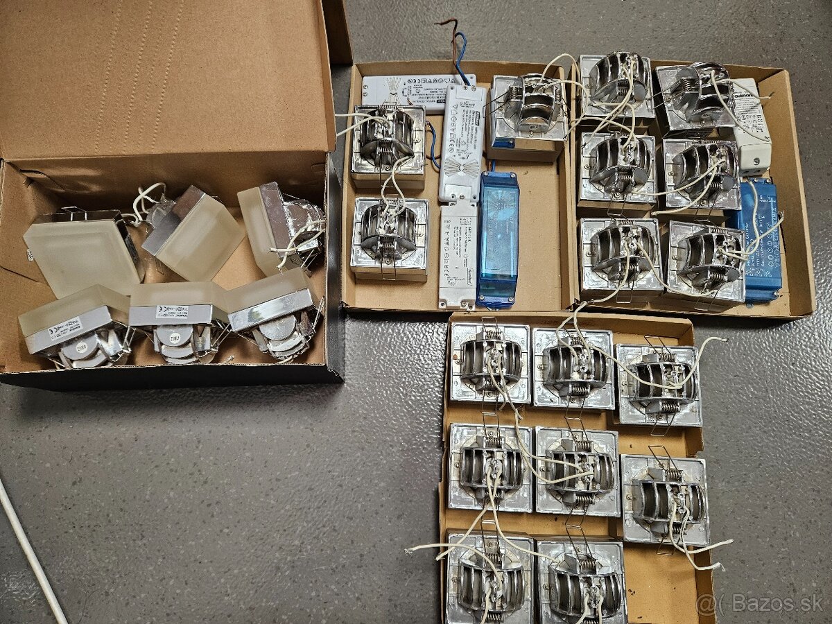 Predáme bodové svetlá 23ks. v kombinácií chrom a mliečnym sklom. Súčasťou sú aj trafa. Farba svietenia je teplá žltá. Nie po kusoch, len ako celok. Odber v Miloslavove, čím skôr, zavadzajú nám. Cena 50€