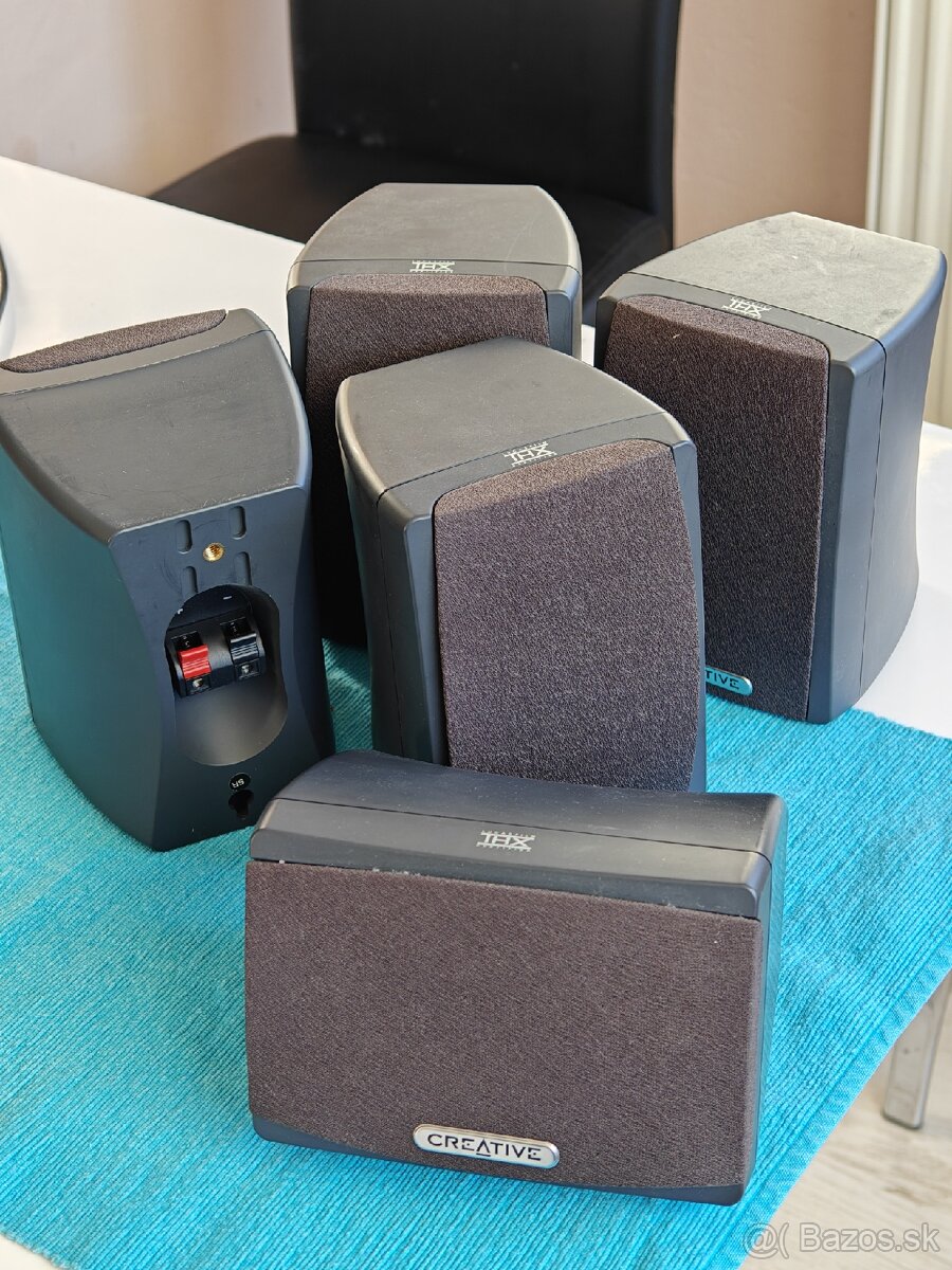 7x satelitné repraciky (práve, ľavé, center, surround) všetky s rovnakým zvukom.