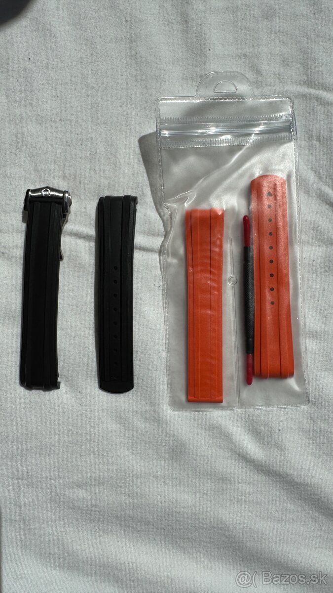 Omega Seamaster Driver 300 remienkom čierny a oranžový. S preklapacou sponou oceľovou s logom omega replika 1:1 super kvalita nové. Čierny len rozbaleny. Koplnet balenie. Predám spolu iba.